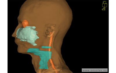 Maske for fiksering ved strålebehandling av kreft i hode og halsregion.